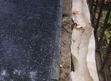 Территорию участка мы застелили геотекстилем, у подножья одного из гранитных памятников установили надгробную плиту.