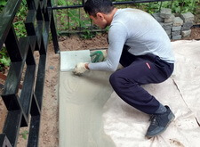 Приехав вновь на кладбище, мы взялись за очистку места захоронения от посторонних элементов: срезали болгаркой старое ограждение; пропололи сорную траву, а также разровняли землю, готовя её к покрытию бетонной плиткой.